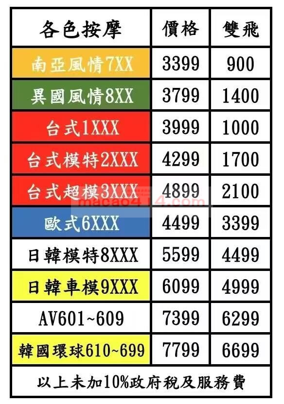 (1)基本价格: 越泰3399,蒙泰越3799,中国3999,中国模特4299,中国超模4899,欧洲4499,日韩5599,日韩车模6099 日本av 7399 环球基本 7799